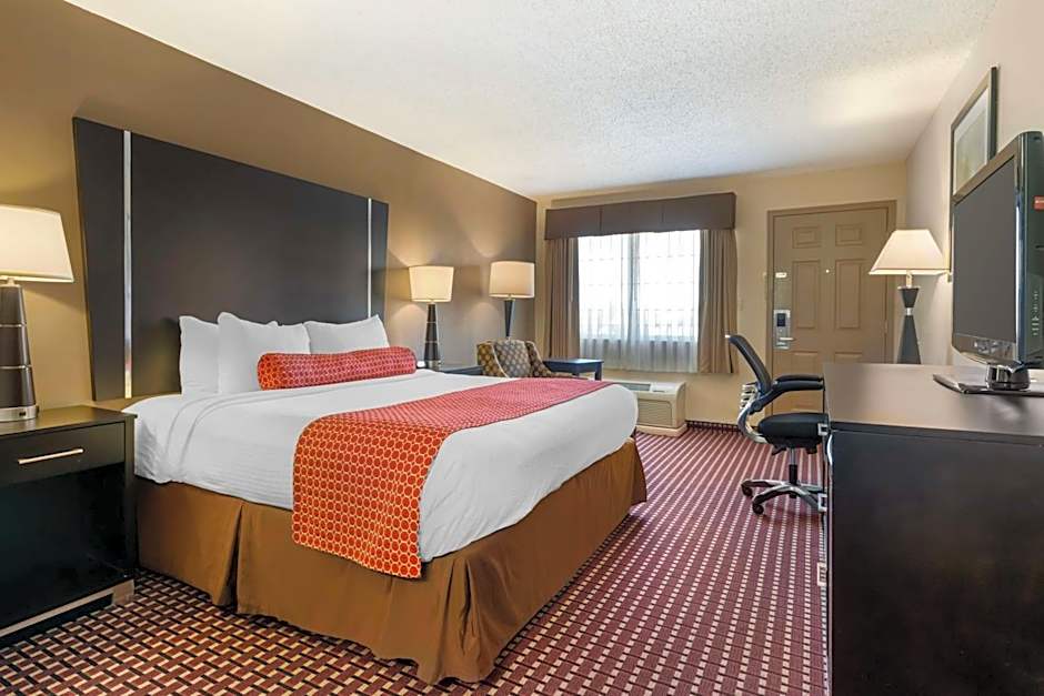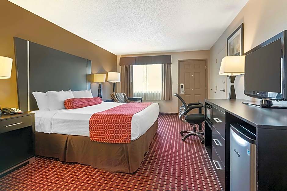 This guestroom has a private entrance, seating area and air conditioning.